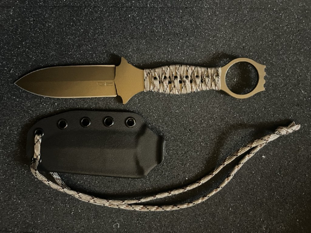 Nůž s pevnou čepelí - GZ Custom Blades - RINGED CLAYMORE DAGGER100 - Burnt bronze čepel/Paracord wrap camo rukojeť