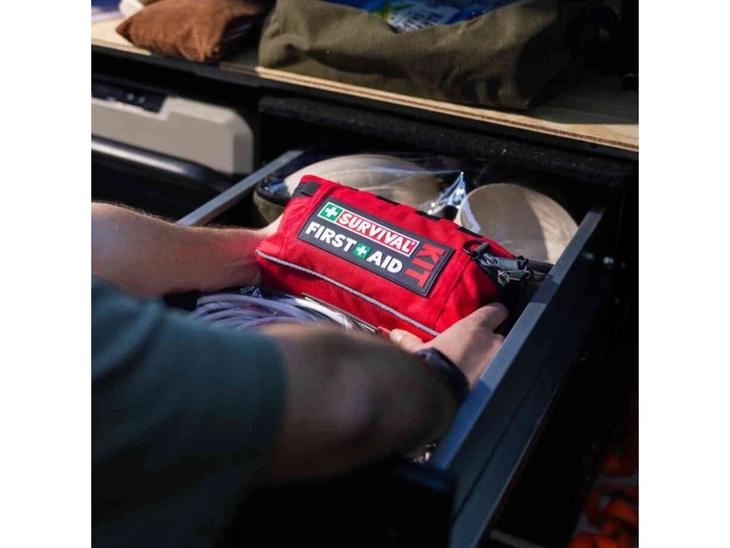 SURVIVAL First Aid KIT – Large je nejobsáhlejší lékárnička značky SURVIVAL, navržená tak, aby byla rychle použitelná i ve stresových situacích. Díky barevným sekcím a jasnému označení položek se v ní vyzná každý — vybavení je logicky rozdělené, snadno dostupné a připravené k okamžitému použití.