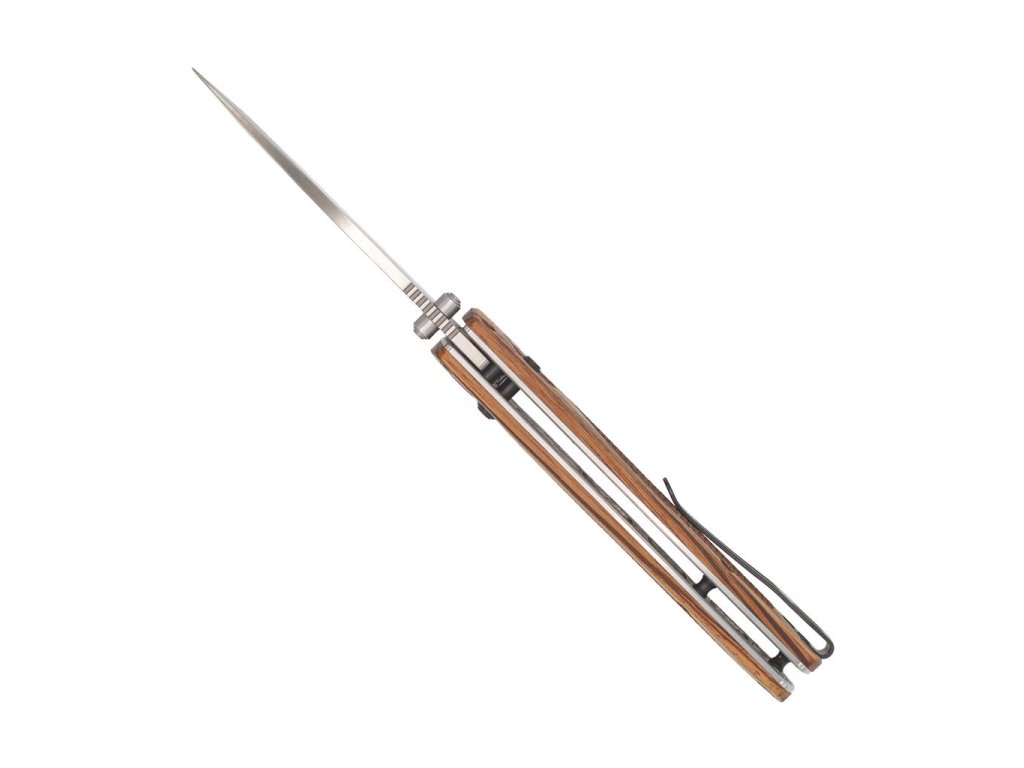 Zebrawood Bar Lock kombinuje spolehlivý výkon s jedinečným přírodním designem. Pevné hliníkové tělo zajišťuje odolnost a nízkou hmotnost, zatímco střenky ze zebrawoodu dávají noži originální vzhled – každý kus je unikát.